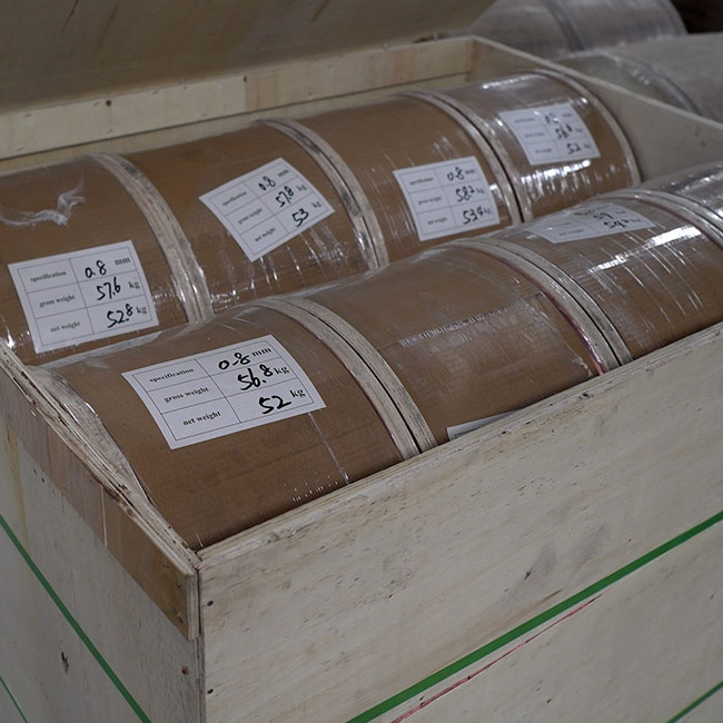 a. 铜包铝镁合金丝应成盘或者成卷供应,并卷绕整齐,妥善包装。每盘或每卷铜包铝镁合金丝应为一整根,不得带有接头。成盘时,最后一层应与盘边外缘保持适当距离;成卷时,应捆扎三处。用户有要求时,还应符合合同要求;